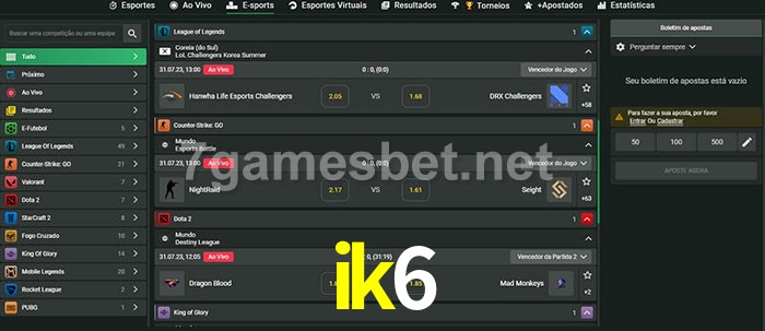 O ik6 oferece uma grande seleção de opções de apostas em e-sports com probabilidades competitivas